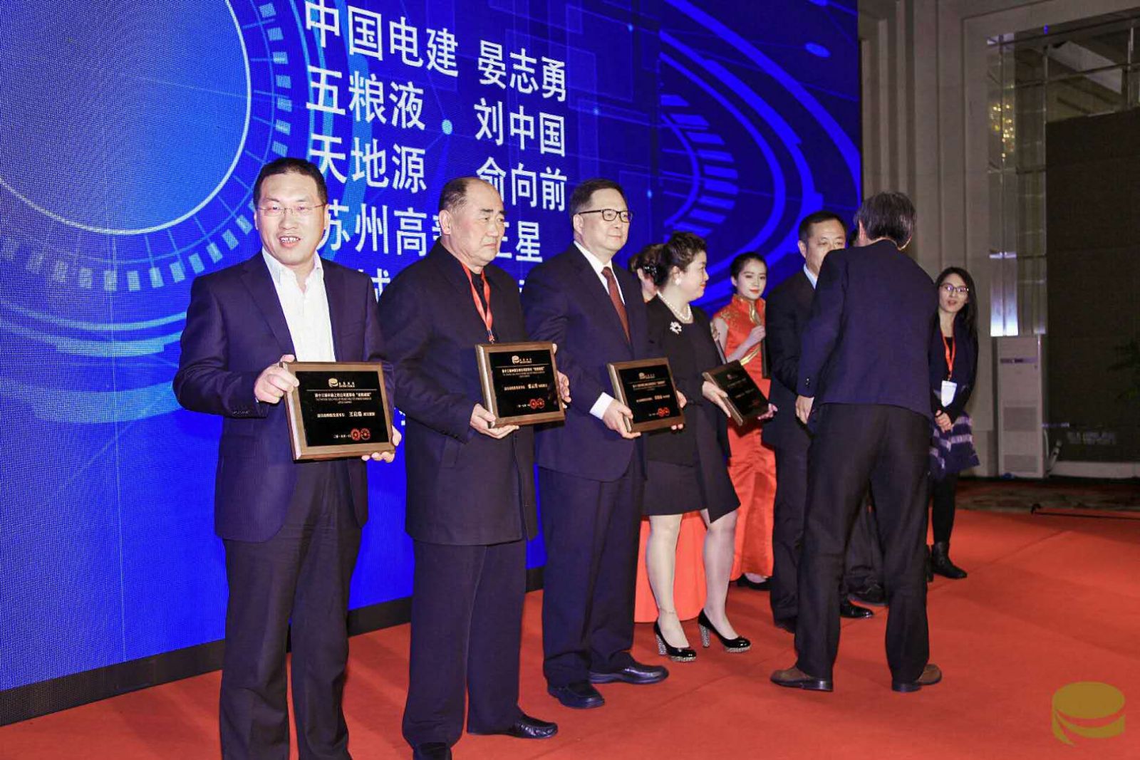 | 同德化工董事長(zhǎng)榮獲第十三屆中國(guó)上市公司董事會(huì)“金圓桌獎(jiǎng)"頒獎(jiǎng)現(xiàn)場(chǎng)(左二為張?jiān)粕? |